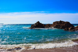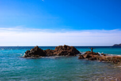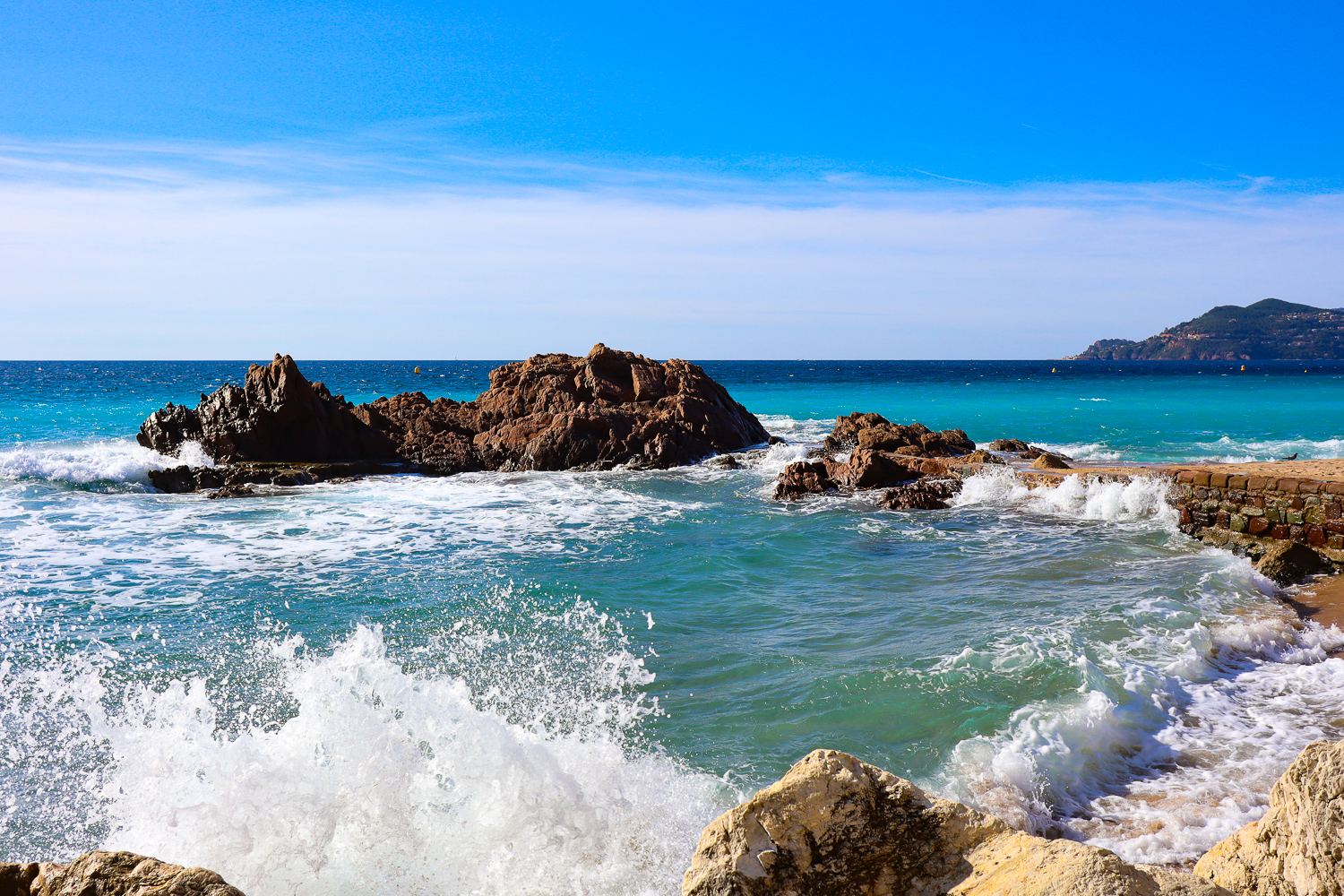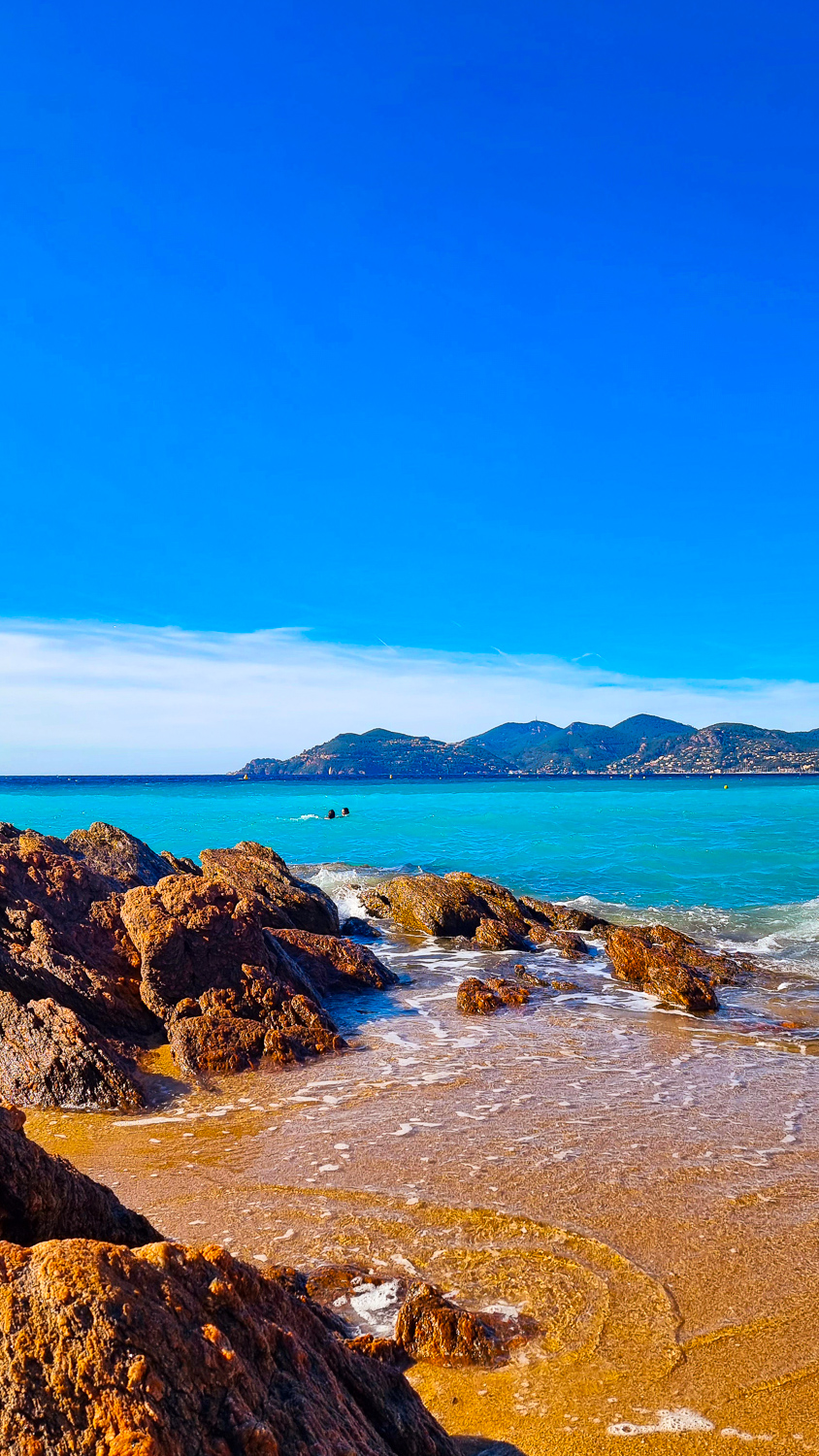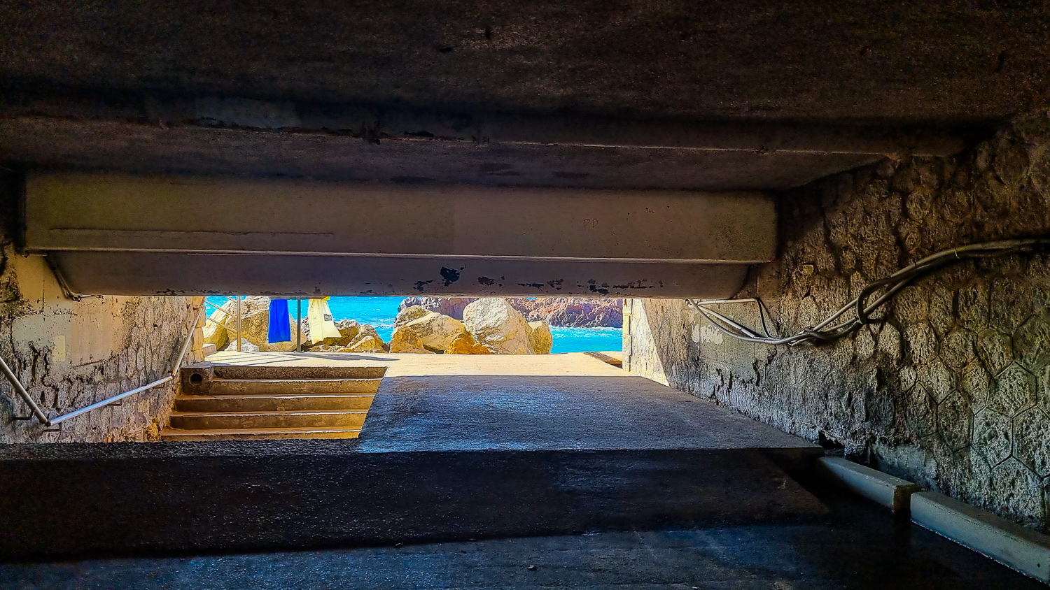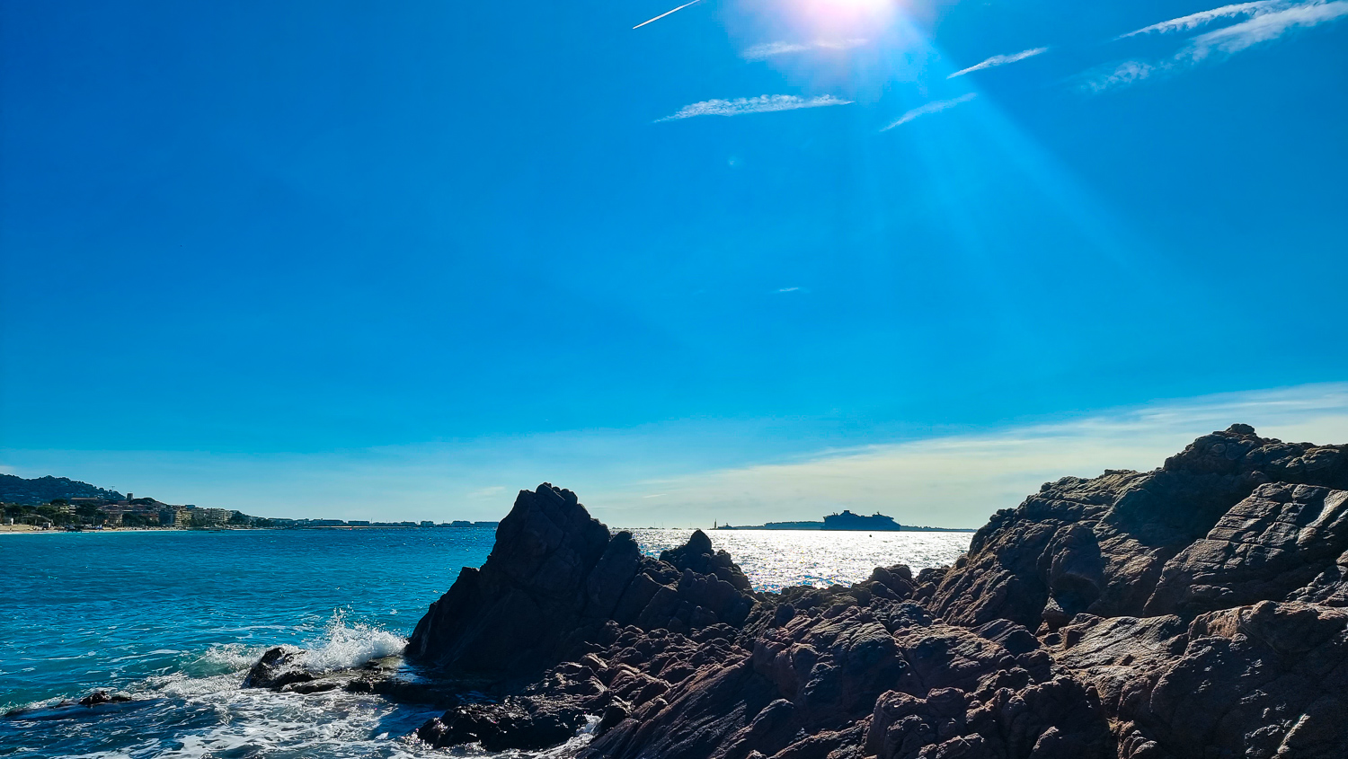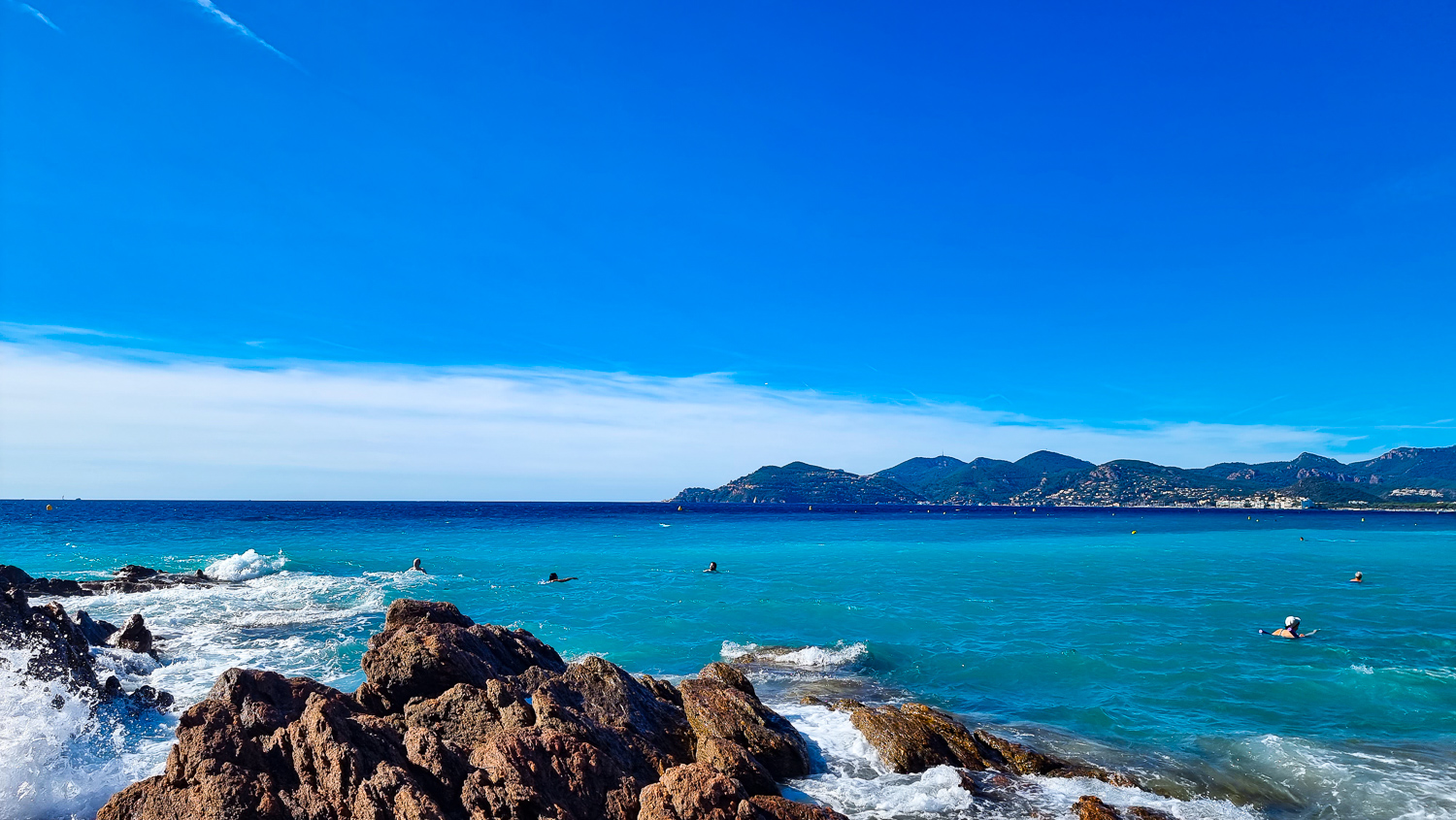 Wir haben uns ja entschlossen mit dem Zug unterwegs zu sein, vor allem da die Parkplatzhöhe uns öfters einen Streich spielt und auch die Anzahl der Parkplätze etwas Bescheiden ist. Da vor unserer Home-Base eine Haltestelle ist (etwa 200m entfernt), stellt dies auch kein wirkliches Manöver dar. Manöver ist eher rauszufinden, wo man ein Ticket kaufen kann, so wie die Züge in welche Richtung abfahren. Aber mit der Zeit wird man ja ein Pro. Gebucht wurde über OMIO (die App ist wirklich gut, Bezahlung über Kreditkarte, Paypal etc. – nur die Namen müssen immer wieder eingegeben werden). SNCF haben wir ausgeschlossen – da hört man nicht so gute Meinungen und man muss die richtige (nicht französische) Webseite finden. OMIO bezahlt man etwas mehr, aber es funktioniert auch wirklich gut. Die Züge fahren in alle Richtungen im Stundentakt, sind wirklich pünktlich und man kann entspannt reisen. Eventuell bei den größeren Bahnhöfen wie Cannes und Nizza könnte es eng werden – da hört man oft dann von den Franzosen „Squeeze“ beim Einsteigen. Ja aber jetzt zu unserem ersten Umstieg in Cannes de Bocca. Also die Franzosen machen schon was richtig, wenn sich folgendes Teil in 30m Entfernung befindet. 10 Meter bis zur Unterführung von der Station – 20 Meter durch die Unterführung – dann der Strand… der Ausblick!