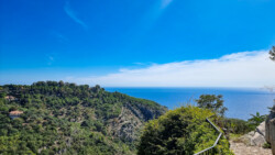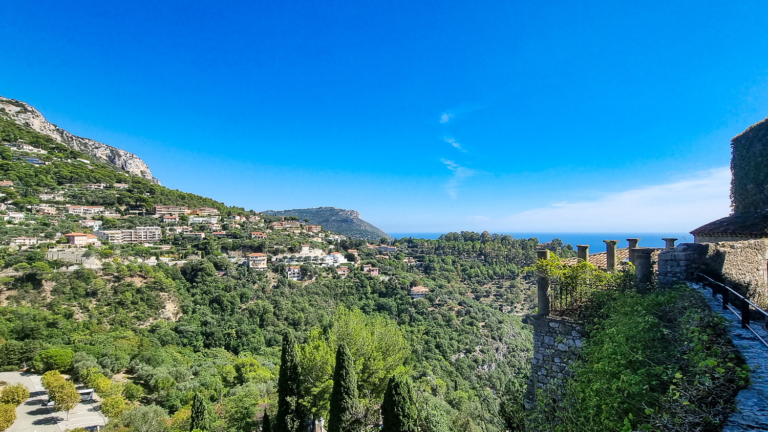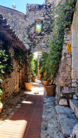 Dieses Gemeinde/Örtchen haben wir ja bei unserer Anreise wegen zu wenigen Parkplätzen ausgelassen – zuerst! Dann haben wir doch Nizza gegen Èze quasi eingetauscht und absolut nicht bereut. So quasi könnte man es beschreiben: „Hoch oben auf einer beeindruckenden Klippe liegt das Örtchen Èze, welches malerischer kaum sein könnte. Man sagt, wer den mittelalterlichen Teil von Èze besucht, meint, in einem Märchen oder zumindest in einer Filmkulisse gelandet zu sein“. Diese Gemeinde besitzt nur 2500 Einwohner und ist wirklich von atemraubender Schönheit. Was Èze etwas irre macht ist, daß auf diesem mittelalterlichen Teil zwei fünf Sterne Hotels beherbergt sind. Eines davon sogar mit zwei Michelin Sterne. Die Preise sind teilweise bombastisch. Für Penne Arrabiata (wirklich einfache Mahlzeit..) bezahlt man 28 Euro in gewissen Lokalen. Aber auch normale Preise in der Burg oben sind Gang und Gäbe – 7 Euro für einen Aperol ist voll in Ordnung. Der malerische Ausblick und das ganze Rumlaufen zahlt sich aus .