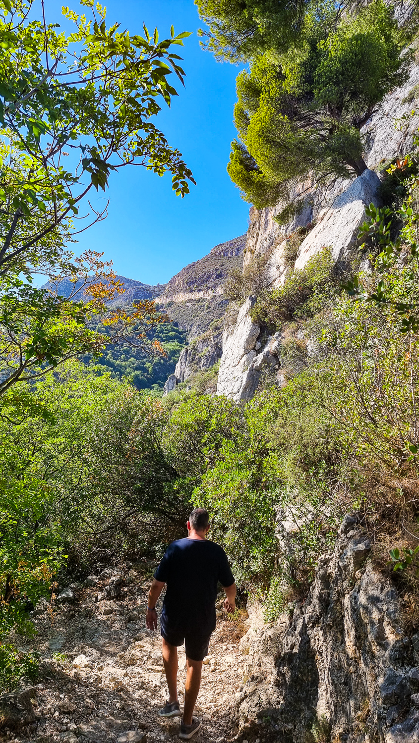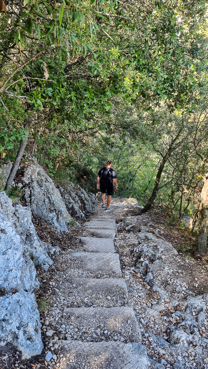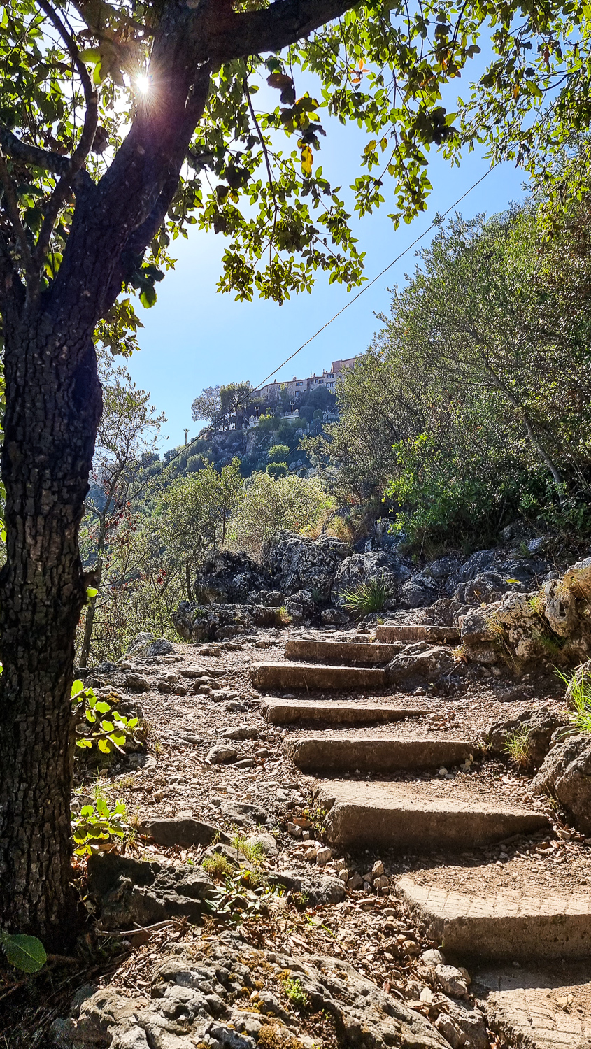 Mann hat sich eingebildet, daß man den Weg (Angabe Bergauf: 1h 45min, Bergab: 45min) ganz gemütlich runtergehen kann. Das ist bei Gott kein Wanderweg, sondern fast klettern. Wir wollten natürlich auch den Zug in Èze Village erreichen und so etwas Gas geben. Liebe Leute – wenn dann runter – sicher ned rauf.